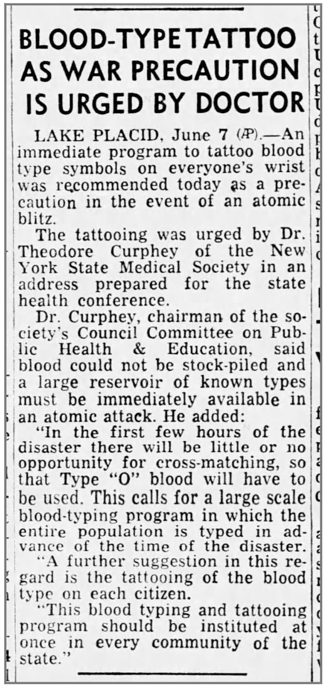 Do you, or someone in your family, have a small blood-type tattoo from the early 1950s?
